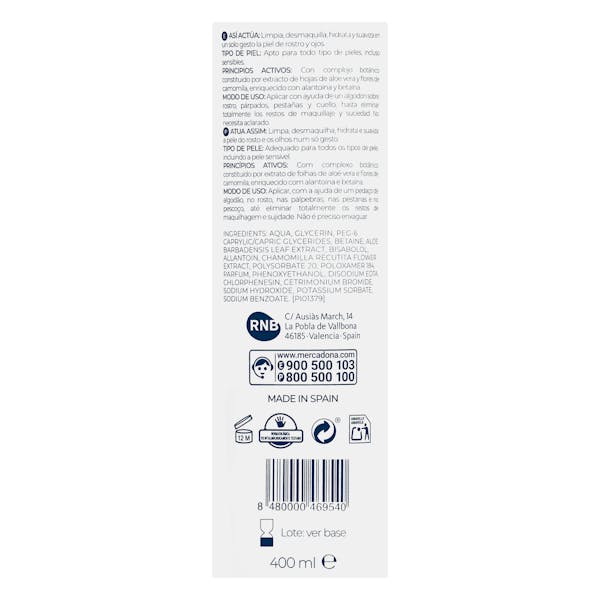 Aqua; Glycerin; PEG-6 Caprylic/Capric Glycerides; Betaine; Aloe Barbadensis Leaf Extract; Bisabolol; Allantoin; Chamomilla Recutita Flower Extract; Polysorbate 20; Poloxamer 184; Parfum; Phenoxyethanol; Disodium EDTA; Chlorphenesin; Sodium Hydroxide; Potassium Sorbate; Sodium Benzoate